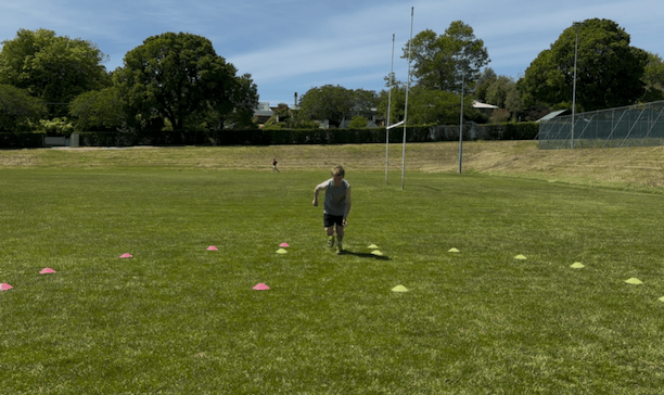 This week integrates previously developed sprinting and braking qualities into more complete agility patterns. The overall training load is reduced to allow recovery and consolidation, while athletes practise efficient movement transitions in controlled, football-relevant shapes. Emphasis remains on quality, posture, and control rather than maximal effort.